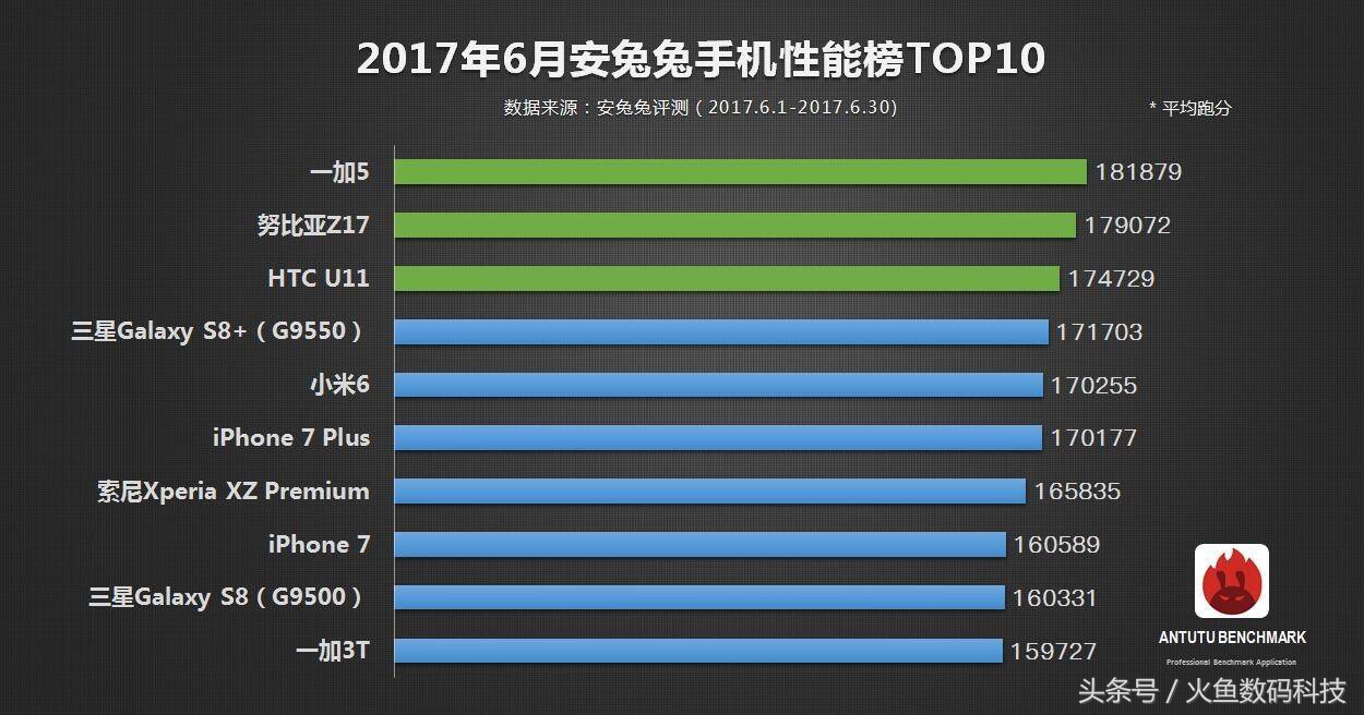 前不久,跑分软件“安兔兔”公布17年6月安卓机五星好评榜TOP10和特性榜TOP10。国产智能手机“一加5”登上双榜